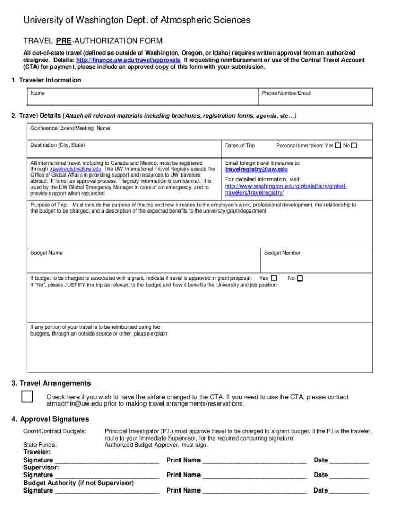 Get the free Atmospheric Sciences Travel Guidelines - atmos.uw.edu - atmos uw