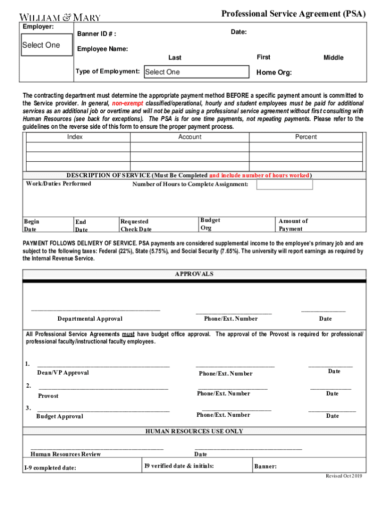 Professional Service Agreement (PSA)