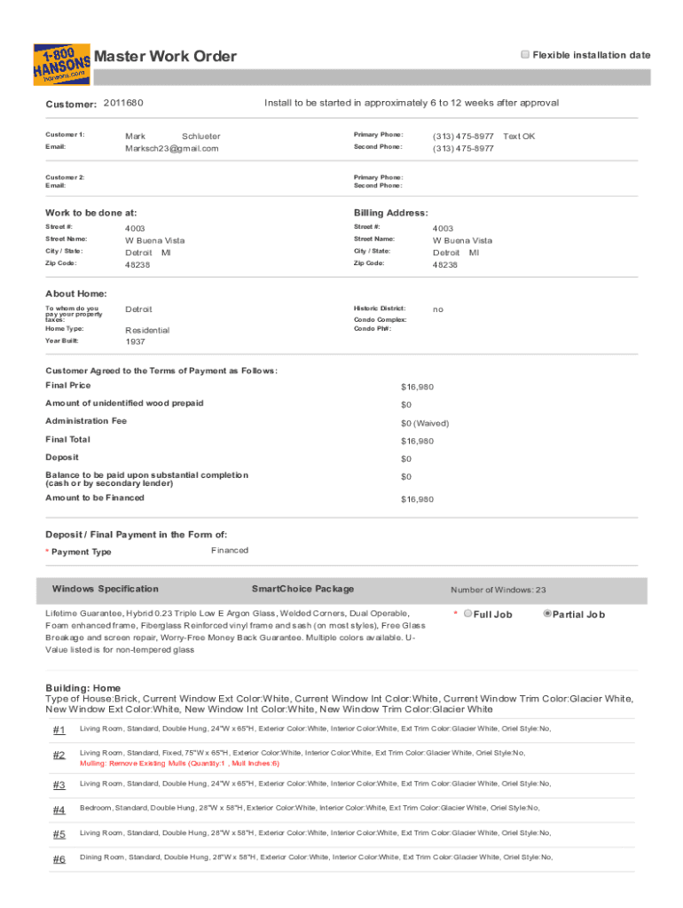 Email:Flexible installation reinstall to be started in approximately 6 to 12 weeks after approval