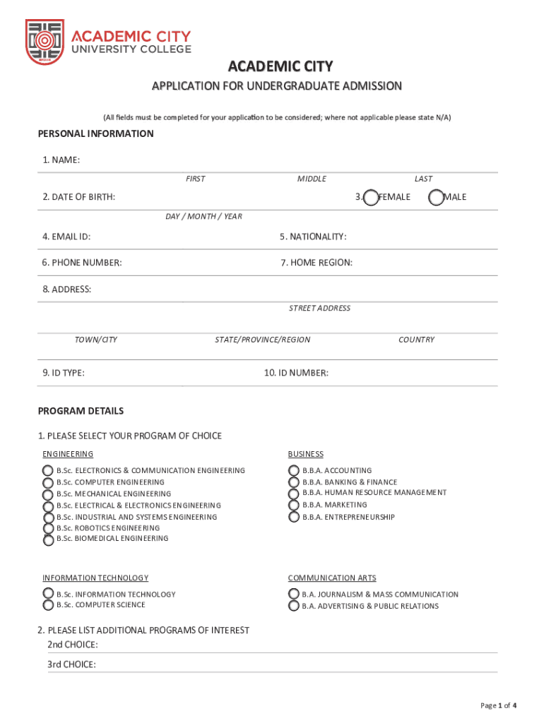 To fill out University College Academic City, one must provide personal information, academic details, and any other relevant information requested by the institution.