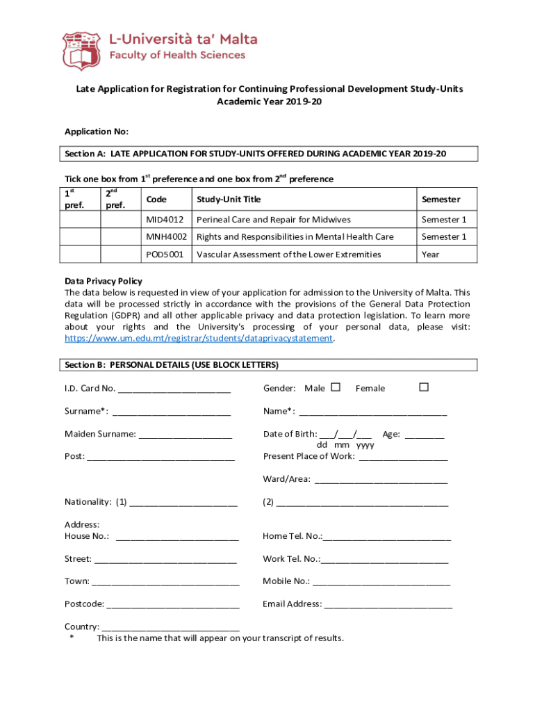Submit the completed late application form along with the supporting documents to the registration office via mail or in person.