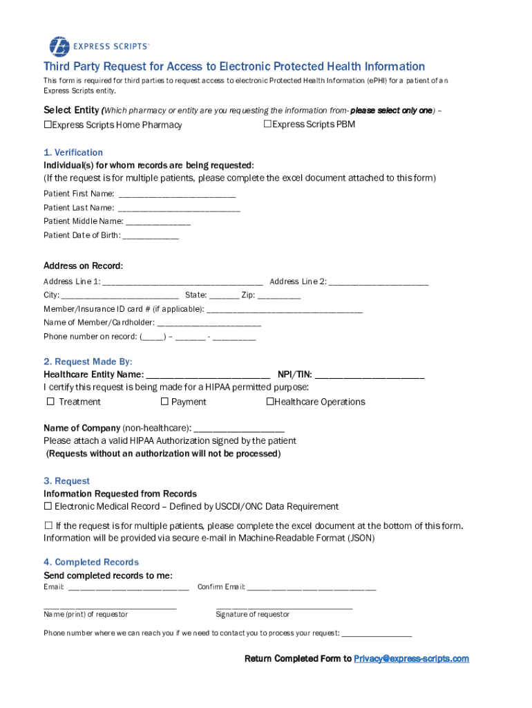 Third Party Request for Access to Electronic Protected Health Information This form is required for third parties to request access to electronic Protected Health Information (phi) for a patient of
