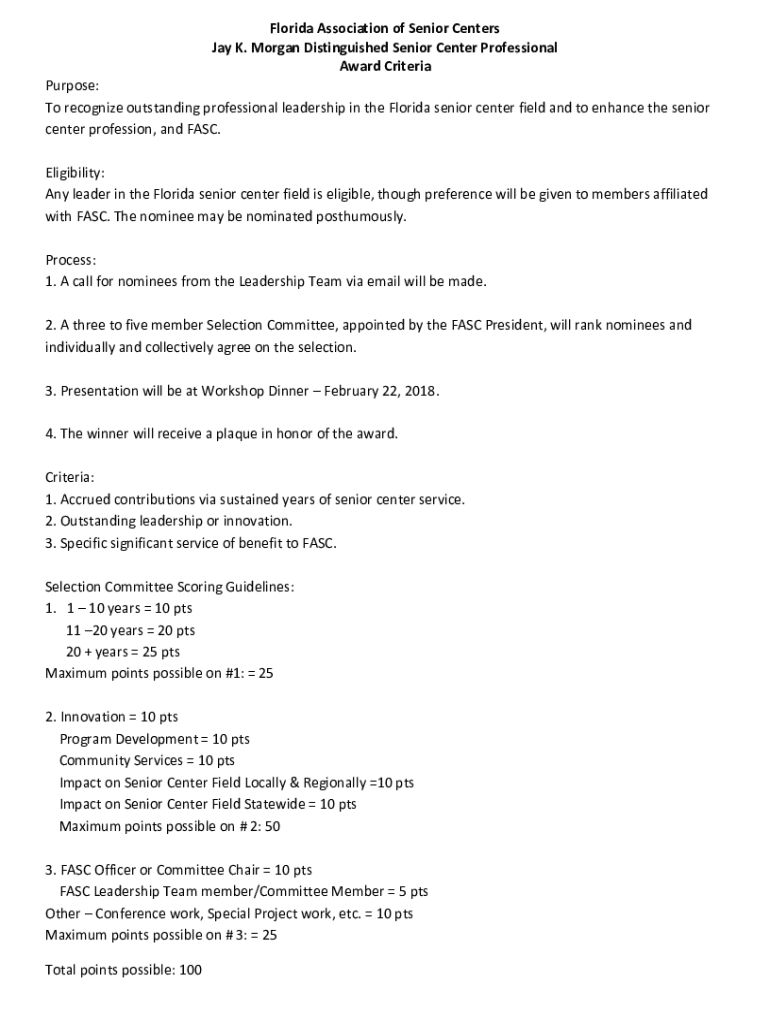 To recognize outstanding professional leadership in the Florida senior center field