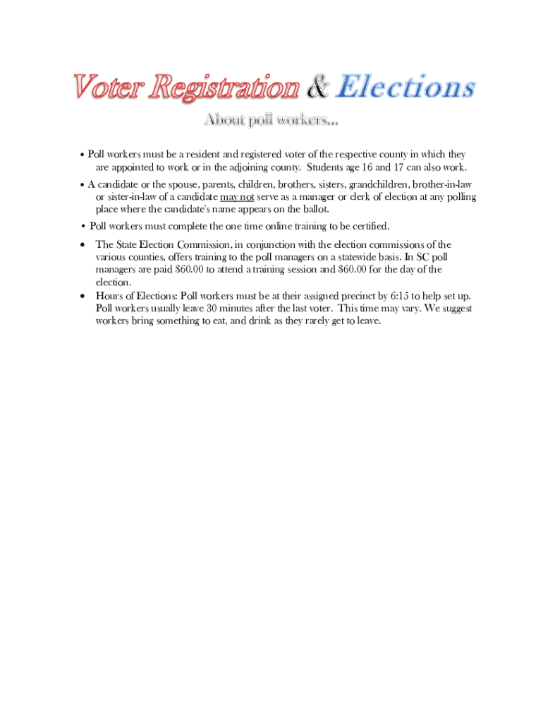 Get the free Election Poll Workers - National Conference of State Legislatures