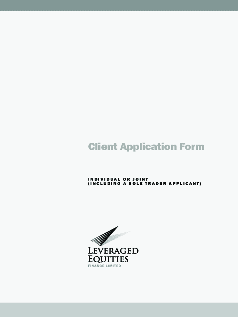 Client Application Form INDIVIDUAL OR JOINT (INCLUDING A SOLE TRADER APPLICANT)1.INDIVIDUAL OR JOINT APPLICANT If you are an INDIVIDUAL or JOINT applicant (including a SOLE TRADER applicant) please