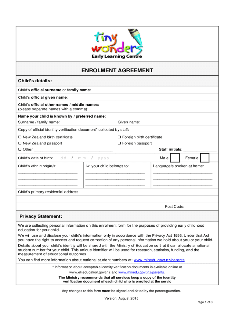 Get the free Enrolment Agreement Form - Full - Tiny Wonders