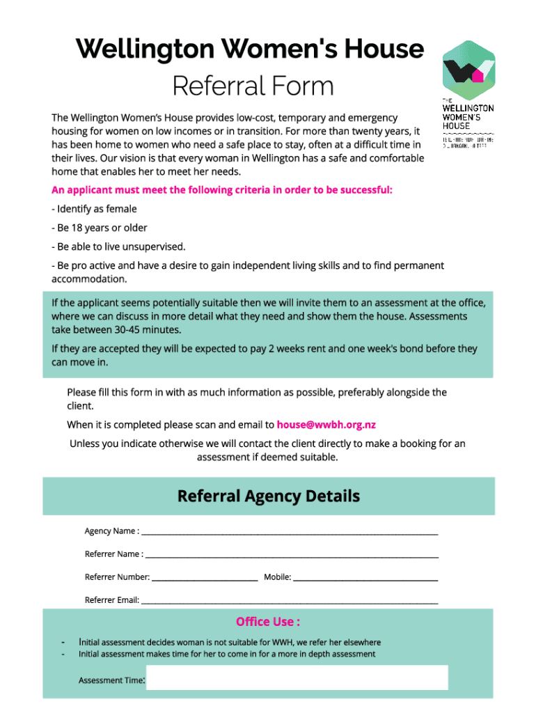 Anyone who is interested in applying for residency at Wellington Womens House needs to fill out the external form. This could include women who are looking for temporary or permanent housing in Wellington, New Zealand. The form helps the organization assess the suitability of applicants and allocate housing resources accordingly.