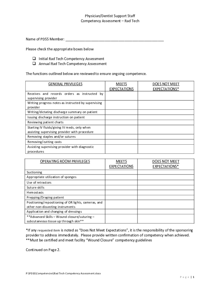 Physician/Dentist Support Staff Competency Assessment Rad Became of PASS Member: Please check the appropriate boxes below Initial Rad Tech Competency Assessment Annual Rad Tech Competency Assessment