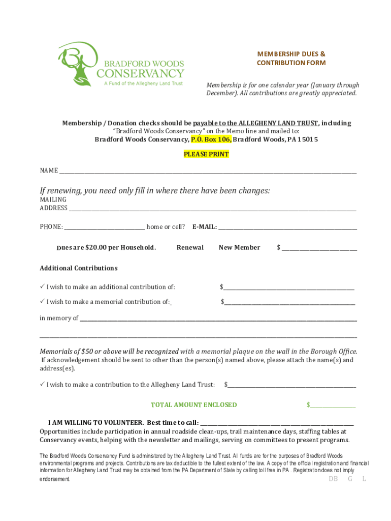 Get the free Annual Membership Registration - Bradford Woods Conservancy