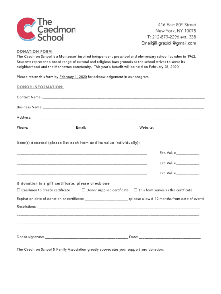 Fill out your benefit donation form 2020docx online with pdfFiller!