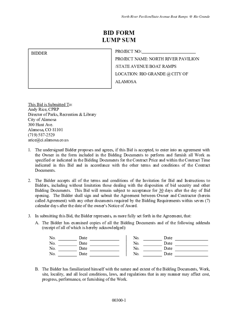 Fill out the boat ramp 600300 bid form carefully, making sure to provide all the requested information accurately.