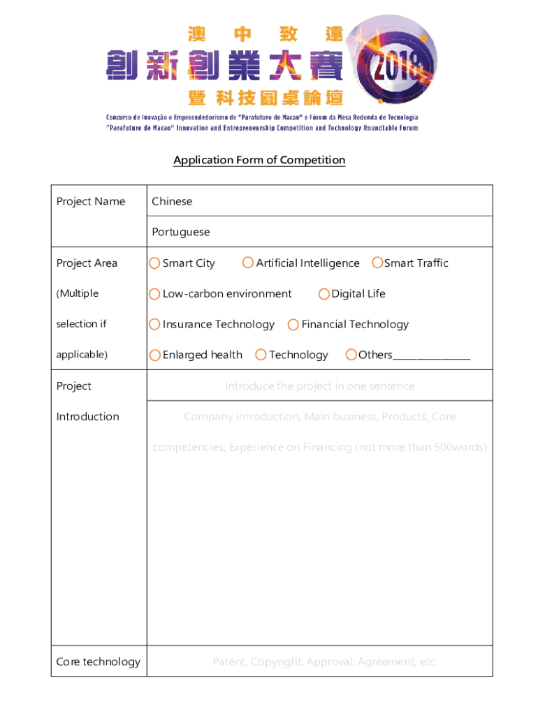 Application Form of CompetitionProject Name Chinese PortugueseProject Area Smart City(MultipleLowcarbon environment selection insurance Technology applicable)Enlarged healthProject IntroductionArtificial