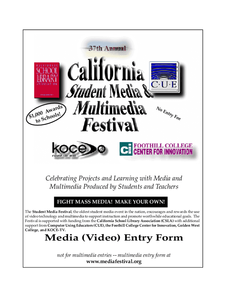 toNoEntryFeeCelebrating Projects and Learning with Media and