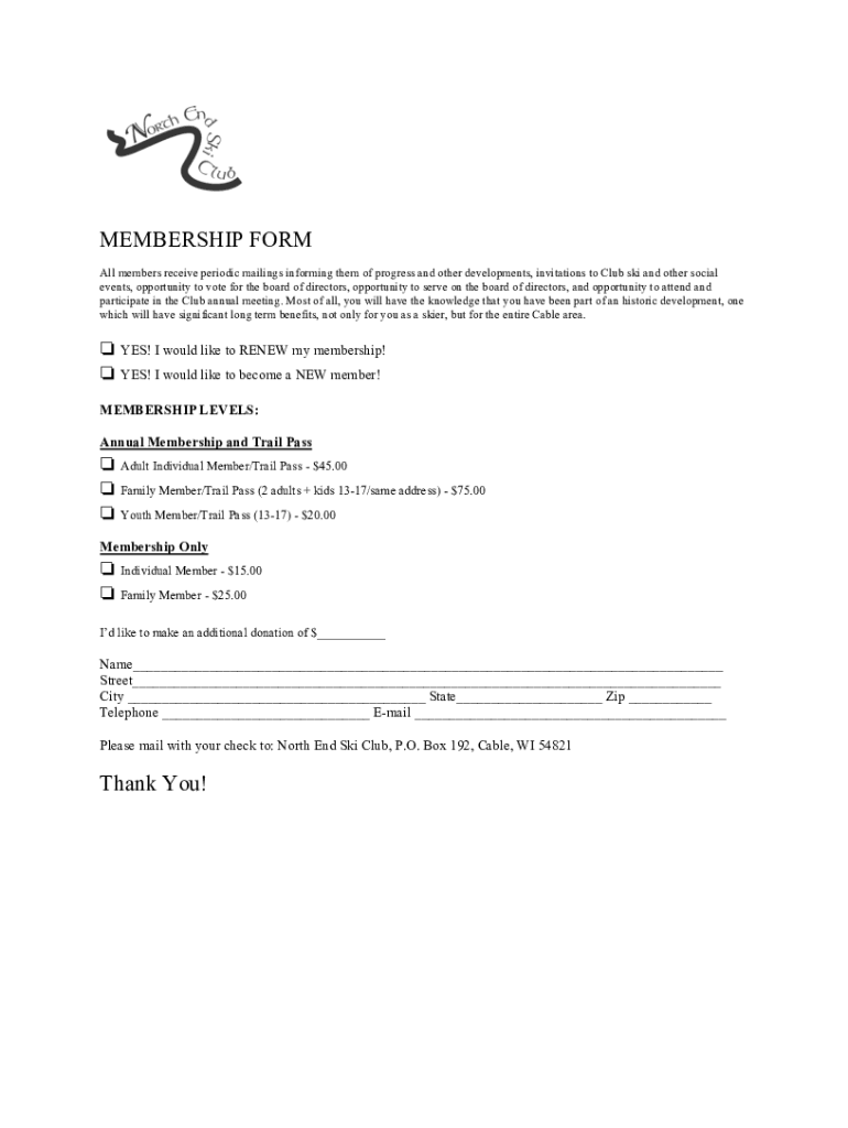 Get the free North End Ski Club Membership & Donation FormCable ...
