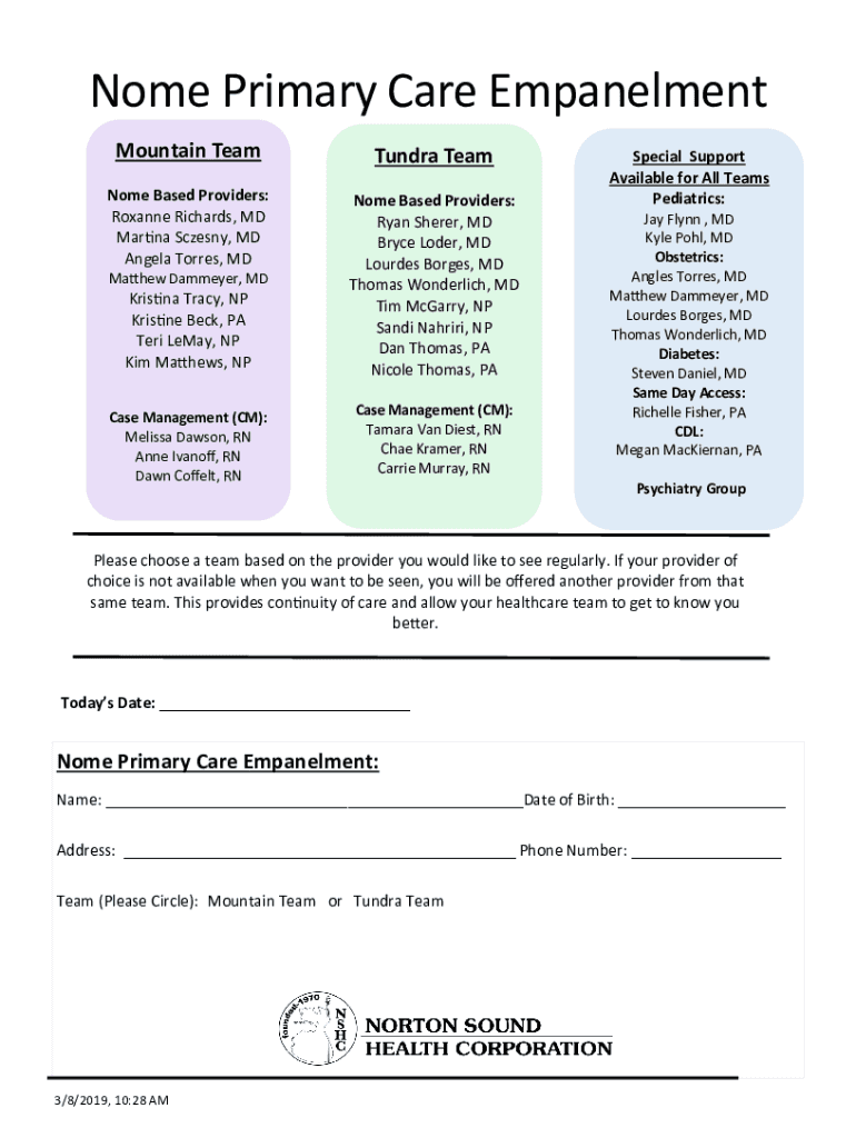 Nome Primary Care Empanelment is not the form you're looking for?Search for another form here.