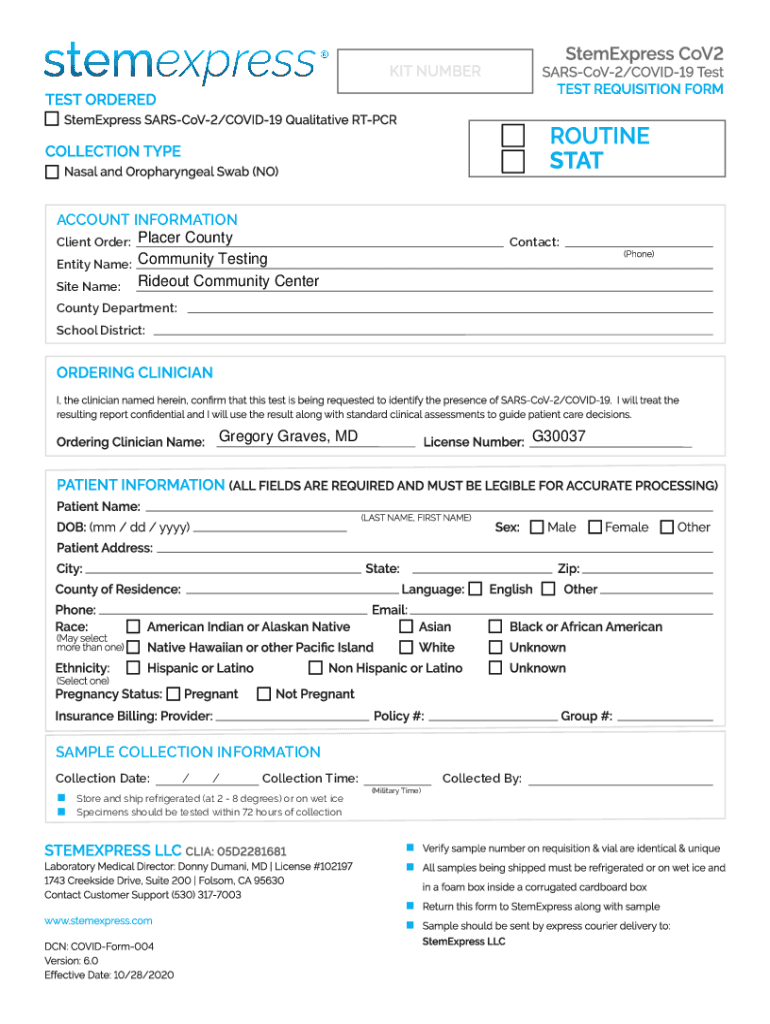 How to fill out sars-cov-2 covid19 test requisiiton