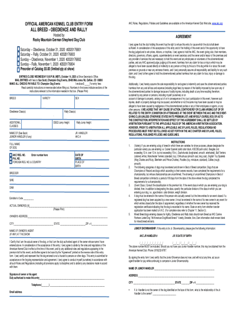 OFFICIAL AMERICAN KENNEL CLUB ENTRY FORM AKC Rules, Regulations, Policies and Guidelines are available on the American Kennel Club Website, www.akc.orgALL BREED OBEDIENCE AND RALLY Hosted by Rocky