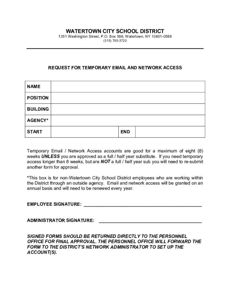 (315) 7853720REQUEST FOR TEMPORARY EMAIL AND NETWORK ACCESSIBLE