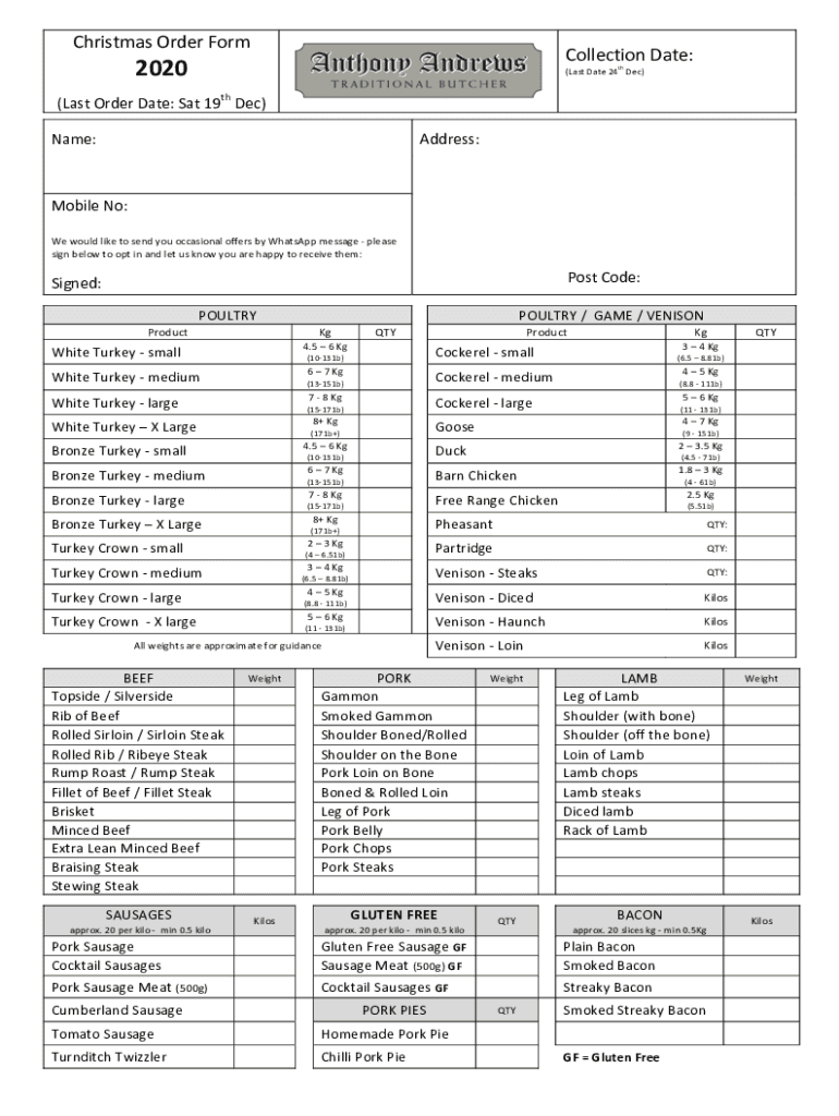 Fill out your xmas order form 2020docx online with pdfFiller!