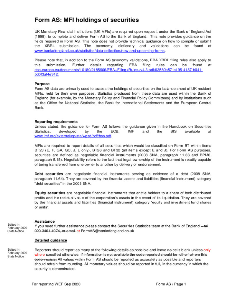 Get the free Form AS: MFI holdings of securities - Bank of England