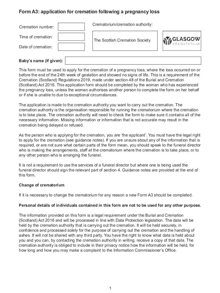 Time of cremation:Crematorium/cremation authority:The Scottish Cremation SocietyDate of cremation: