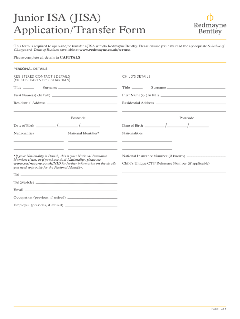 Get the free Junior Cash ISA (JISA) account application form