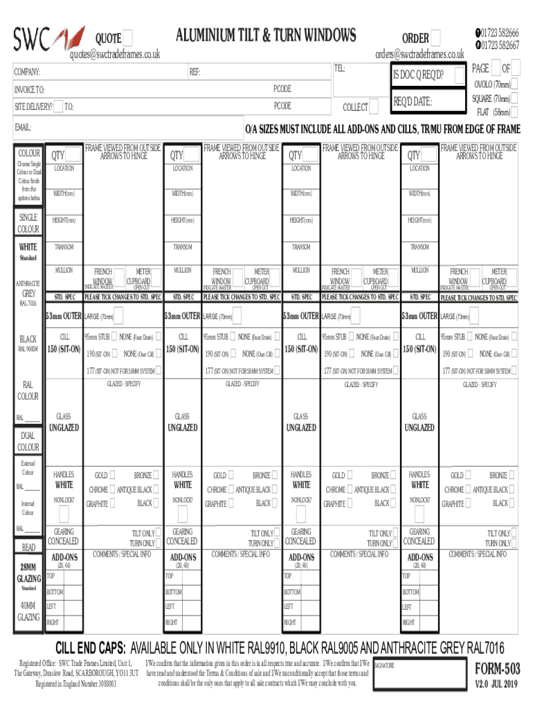 Get the free QUOTE ALUMINIUM TILT & TURN WINDOWS ORDER - SWC Trade Frames