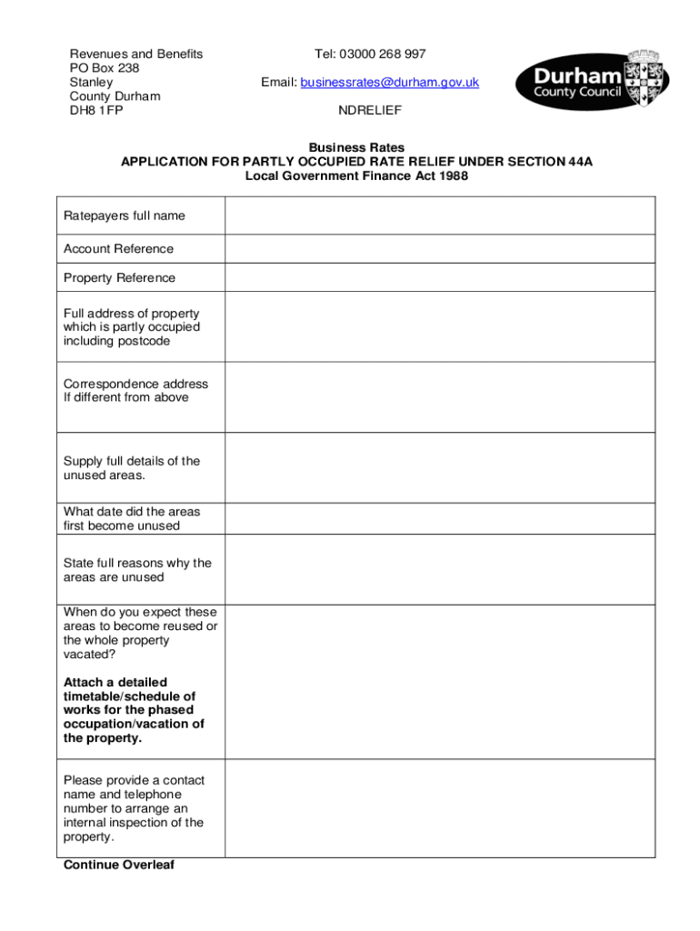 Get the free Business Rates APPLICATION FOR PARTLY OCCUPIED RATE RELIEF ...
