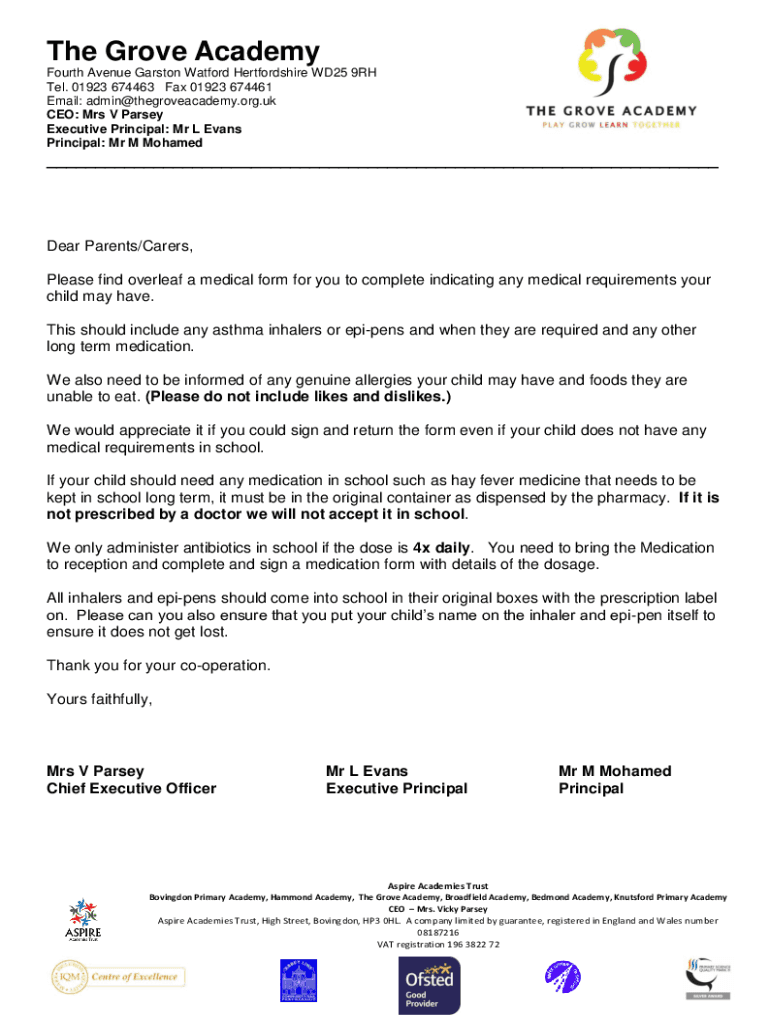 All staff and faculty members at Grove Academy are required to file email adminformgroveacademy.