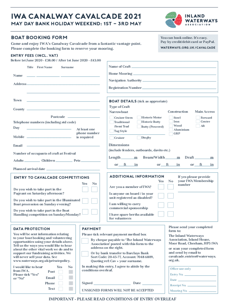 IRA Canal way Cavalcade 2021 May Day Bank Holiday Weekend: 1st 3rd May Boat Booking Form can book online. It's easy. Pay by credit/debit card or PayPal. Come and enjoy Was Canal way Cavalcade from