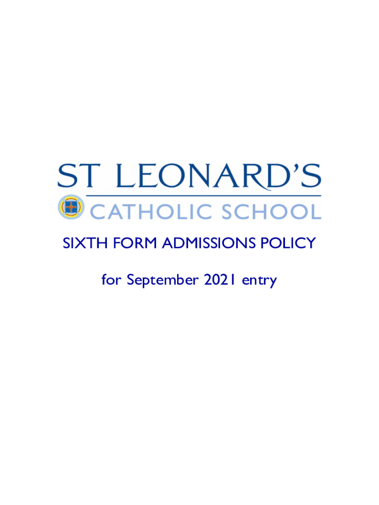 for September 2021 entryApplications to the Sixth Form22021Applications to the Sixth Form2021St Leonard's Catholic School is a voluntary aided Roman Catholic comprehensive