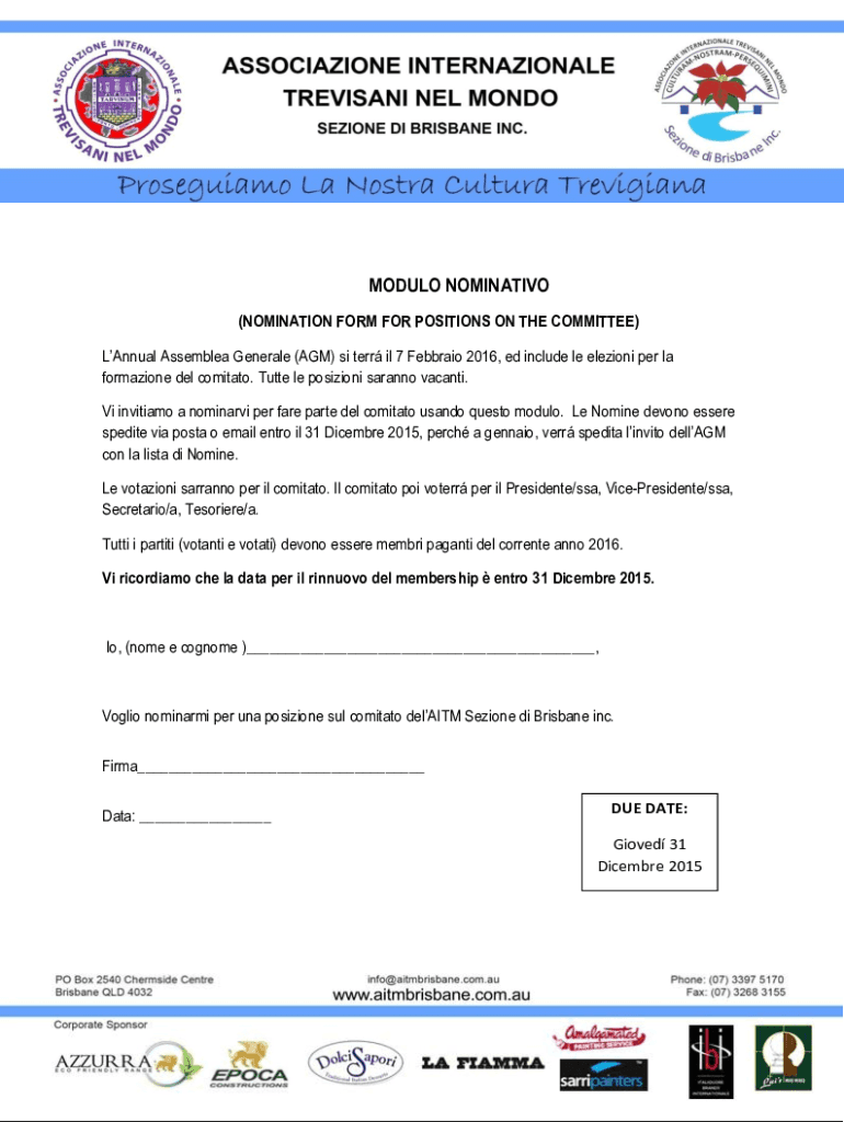 (NOMINATION FORM FOR POSITIONS ON THE COMMITTEE)