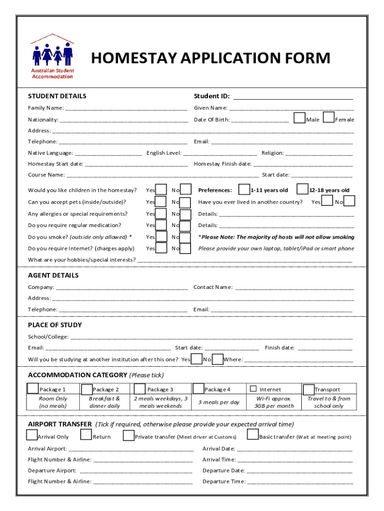 Anyone who is seeking accommodation in a homestay environment needs the homestay request form version.