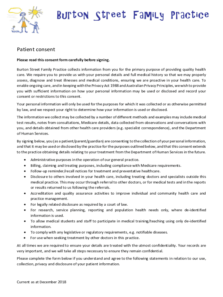 Burton Street Family Practice collects information from you for the primary purpose of providing