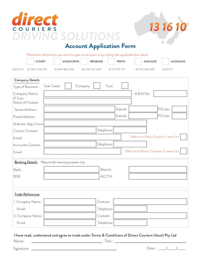 DRIVING SOLUTIONSAccount Application Form×Nominate the branch you want to open an account in by ticking the applicable box above.