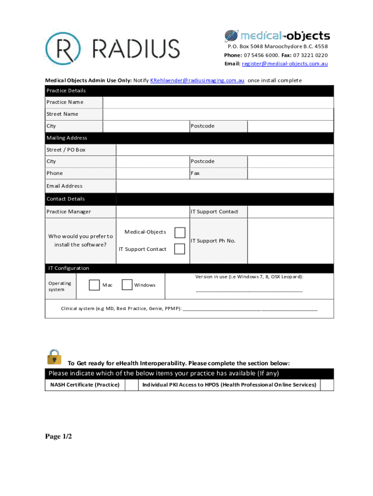 Medical Objects Admin Use Only: Notify KRehlaender@radiusimaging.com.au once install