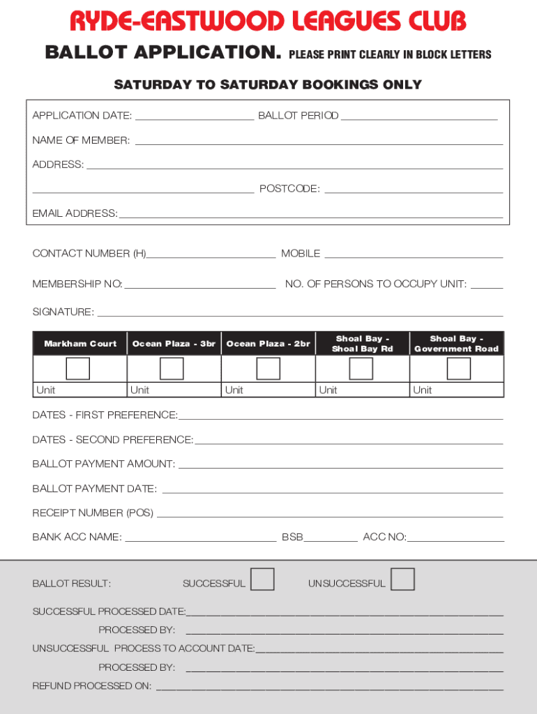Get the free BALLOT APPLICATION. - releagues.com.au