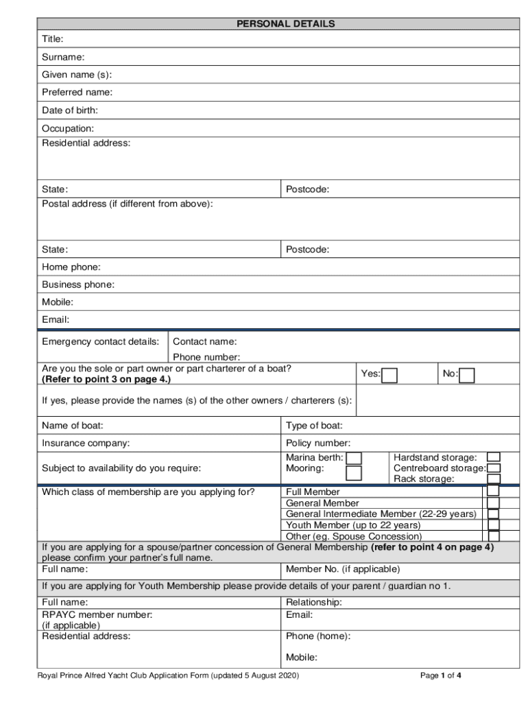 Get the free Royal Prince Alfred Yacht Club. Membership Application Form