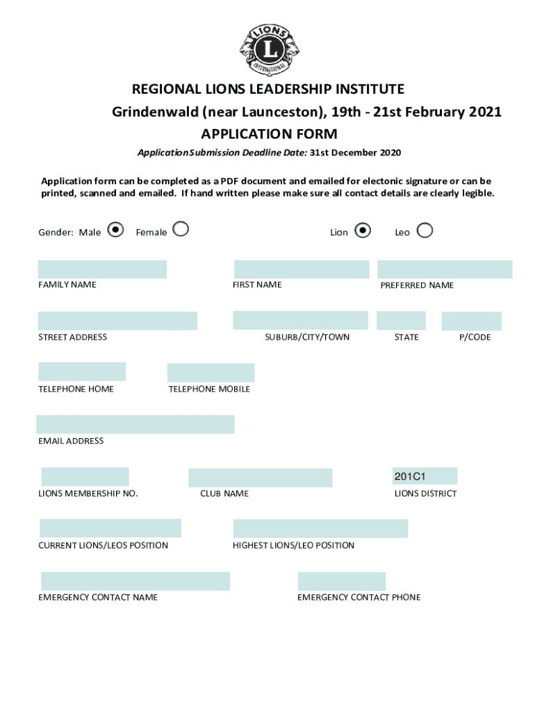 Complete the application form provided by Lions Clubs Australia, ensuring all necessary information is provided.