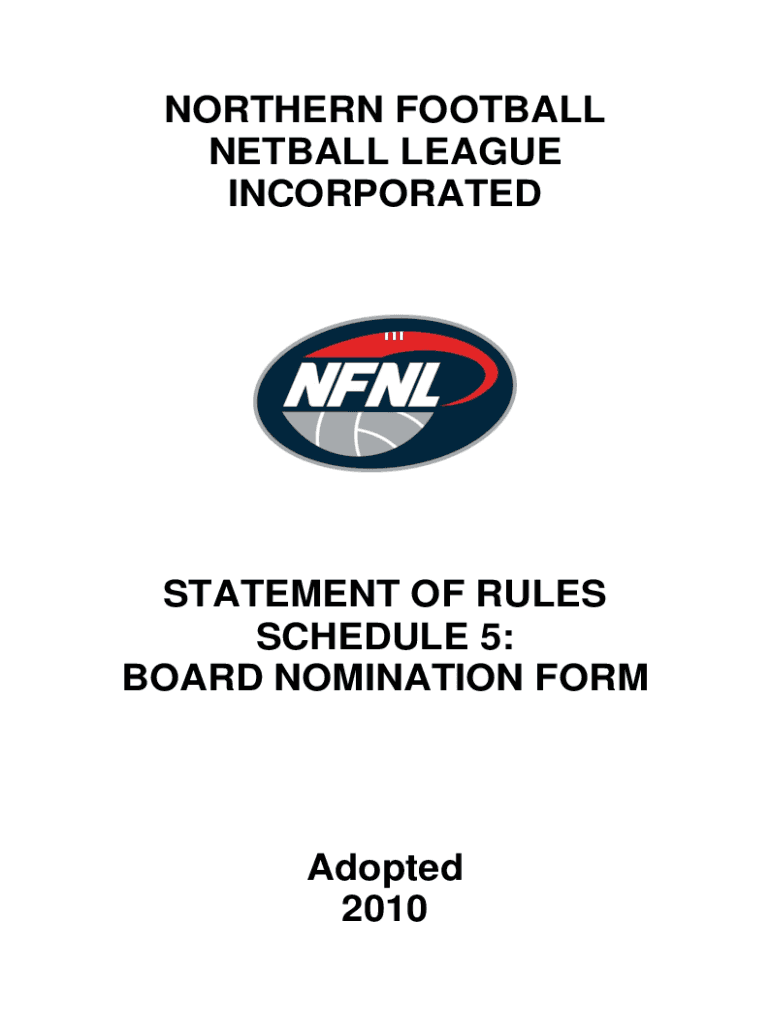 Get the free NFNL Statement of Rules Schedule 5 - Board Nomination Form (Adopted 2010)