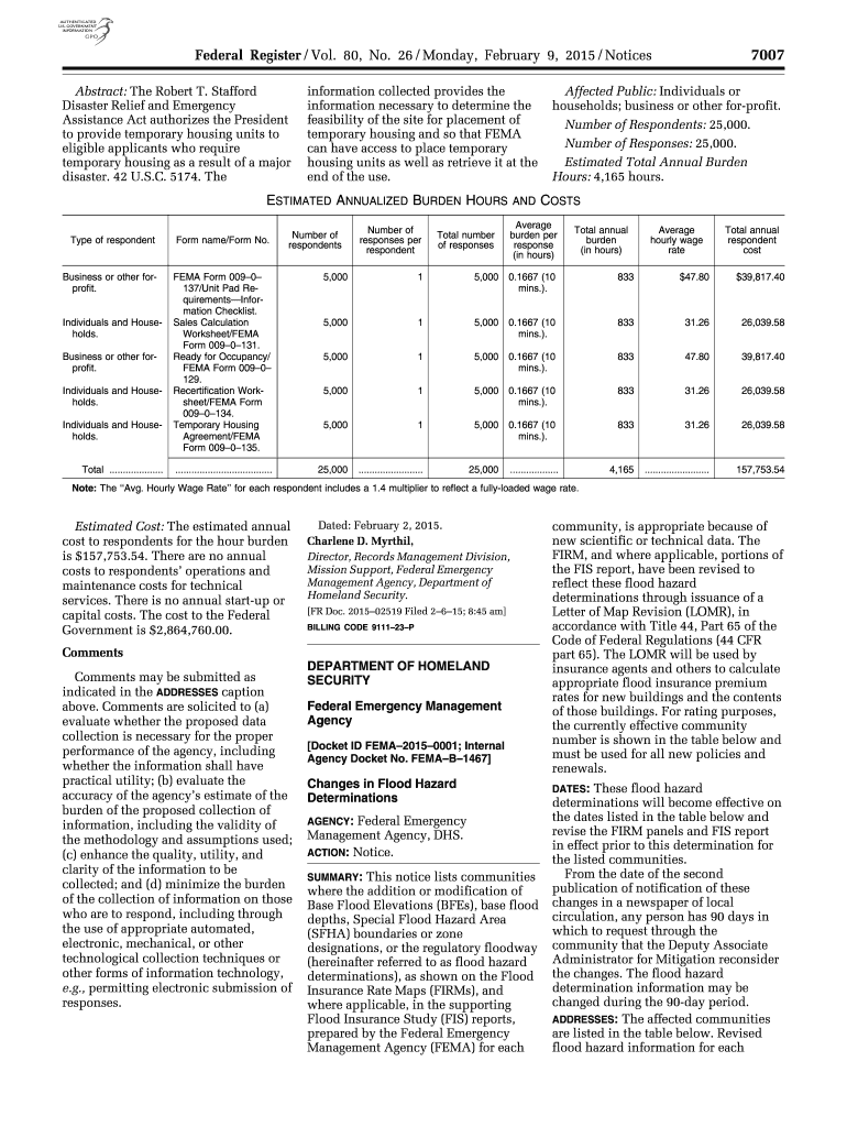 7007 Federal Register / Vol. 80, No. 26 / Monday, February 9, 2015 / Notices Abstract: The Robert T. Stafford Disaster Relief and Emergency Assistance Act authorizes the President to provide temporary