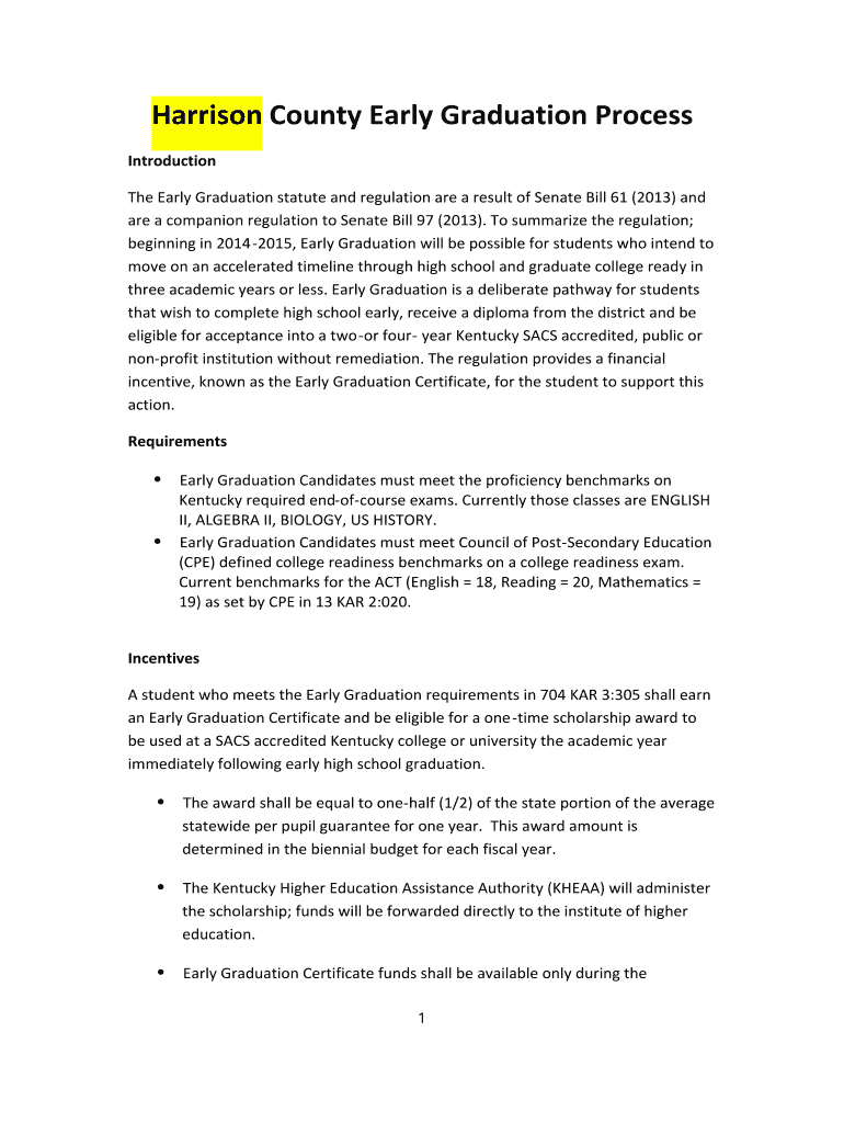 Get the free HarrisonCounty Early Graduation Process - Harrison County Schools - harrison k12 ky