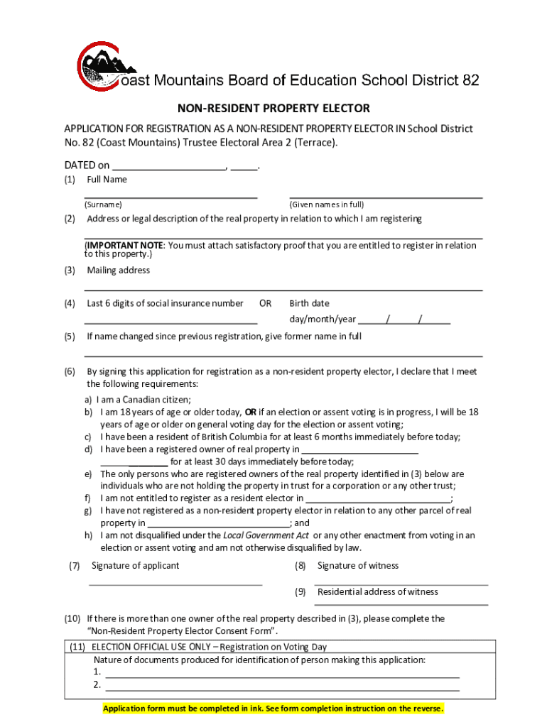 Get the free NON-RESIDENT PROPERTY ELECTOR - Coast Mountains School ... - caledonia cmsd bc