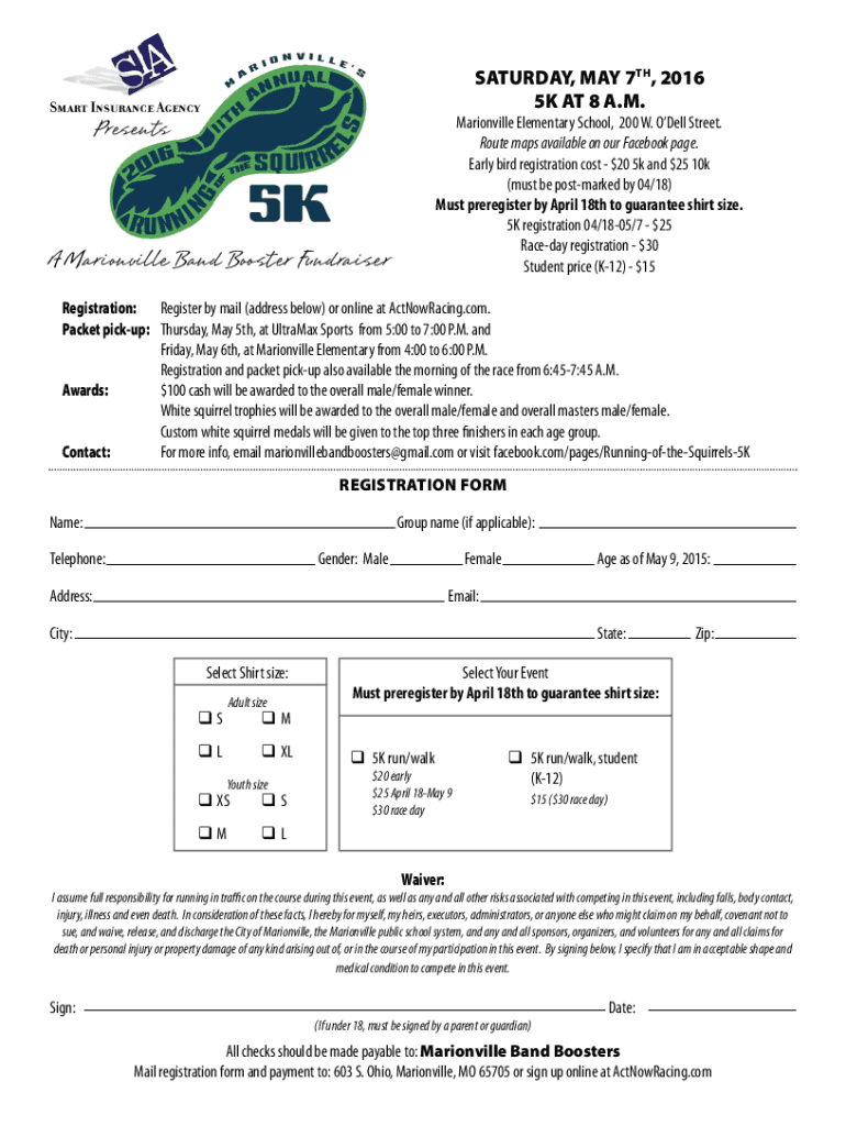 May7Smart Insurance Agency11TPresents6 O F1 20MAHON VILLA S IN ANUALSATURDAY, MAY 7TH, 2016 5K AT 8 A.M. Marysville Elementary School, 200 W. Odell Street. Route maps available on our Facebook page.