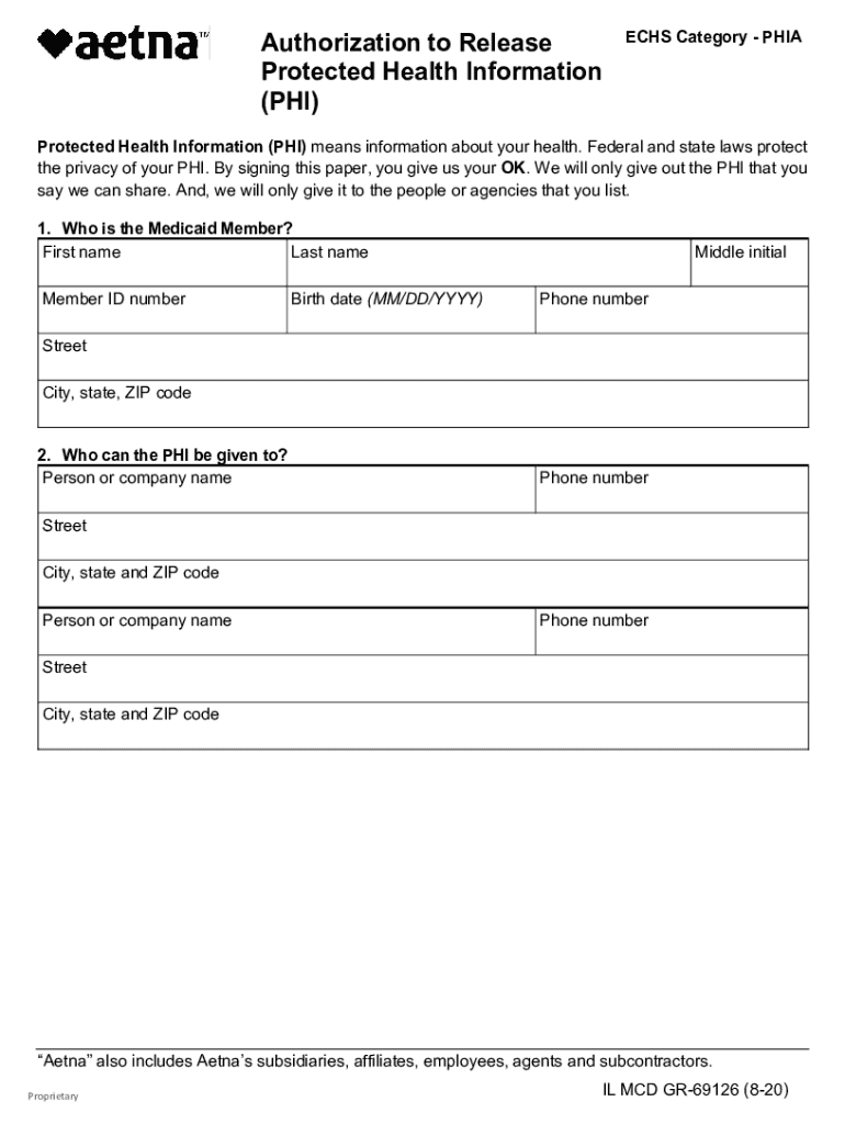Get the free Authorization to Release Protected ECHS Category - PHIA ...