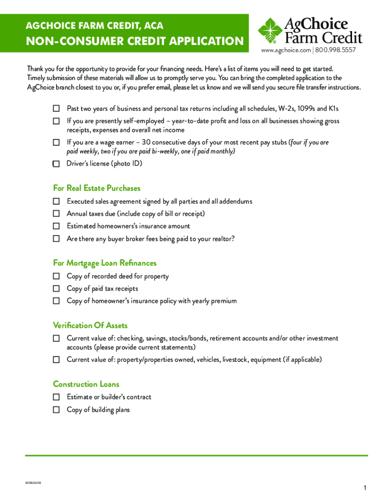 Non-consumer loan applications agchoice can be filled out online or in-person through the Agchoice website or office.