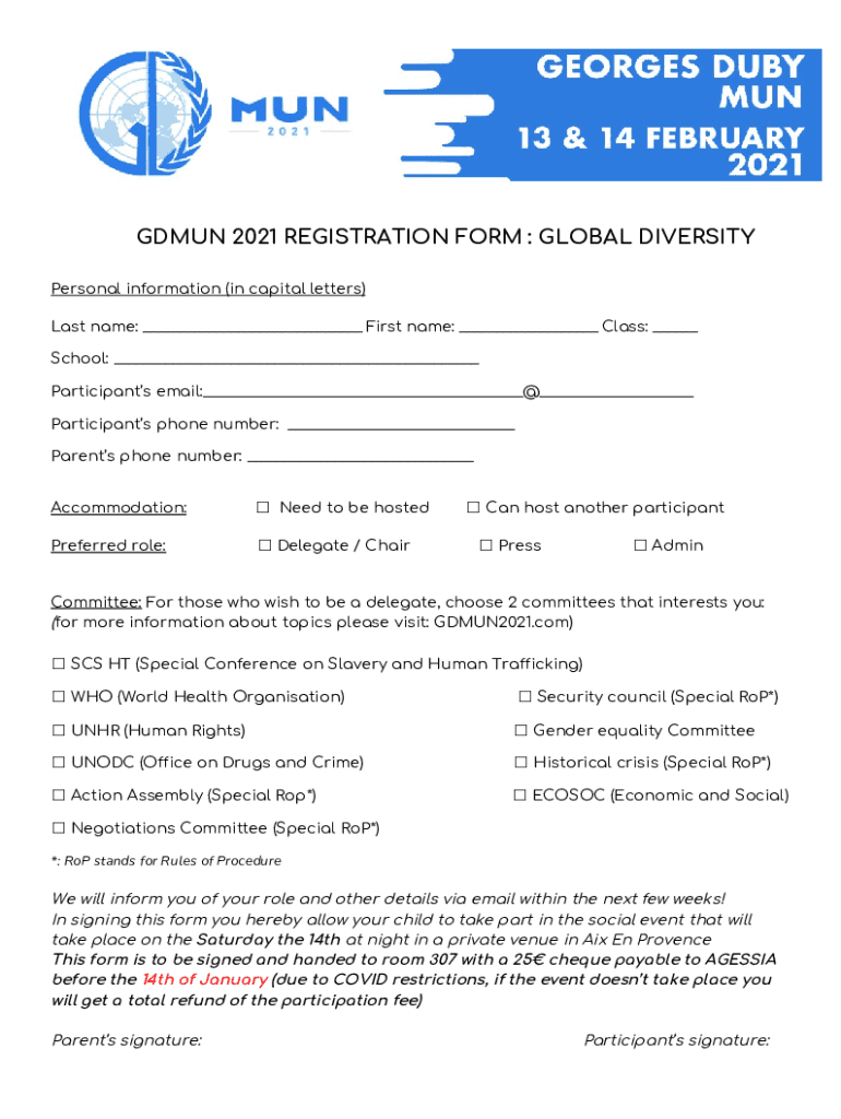 Get the free G DMUN 2021 REGISTRATION FORM : GLOBAL DIVERSITY