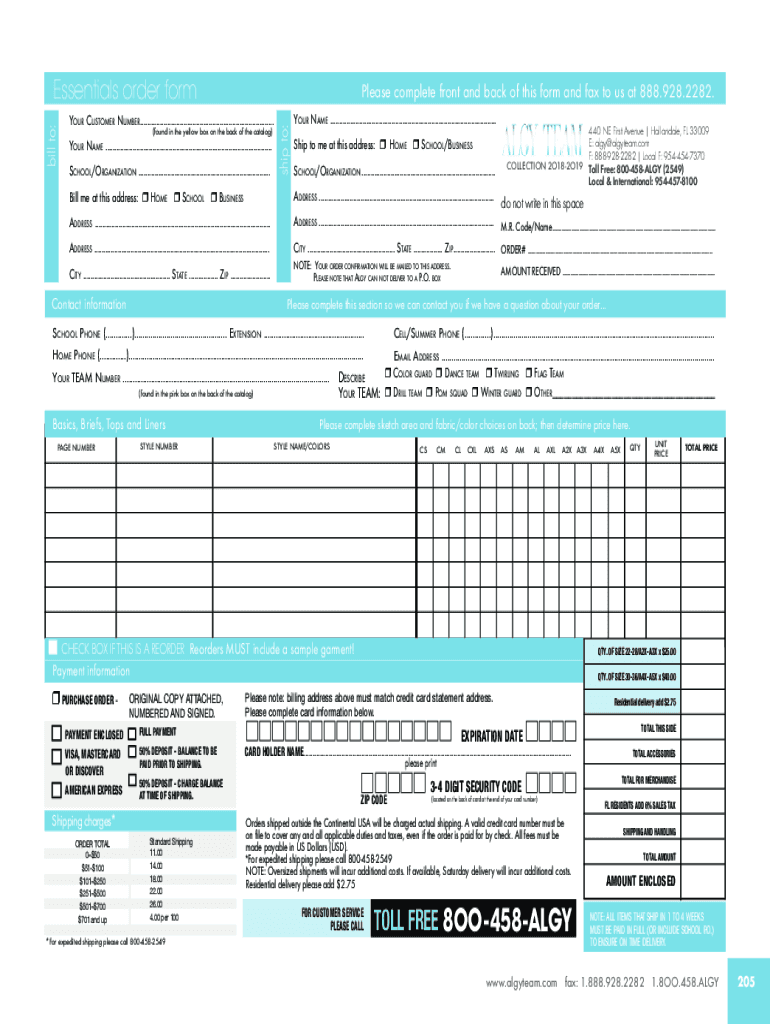 Get the free NOTE: ALL ITEMS THAT SHIP IN 1 TO 4 WEEKS MUST BE ... - Algy Team