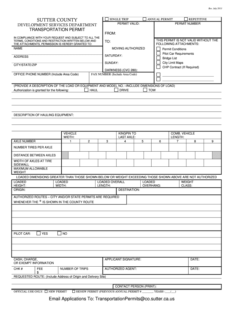 Get the free Sutter County Single Trip Annual Permit