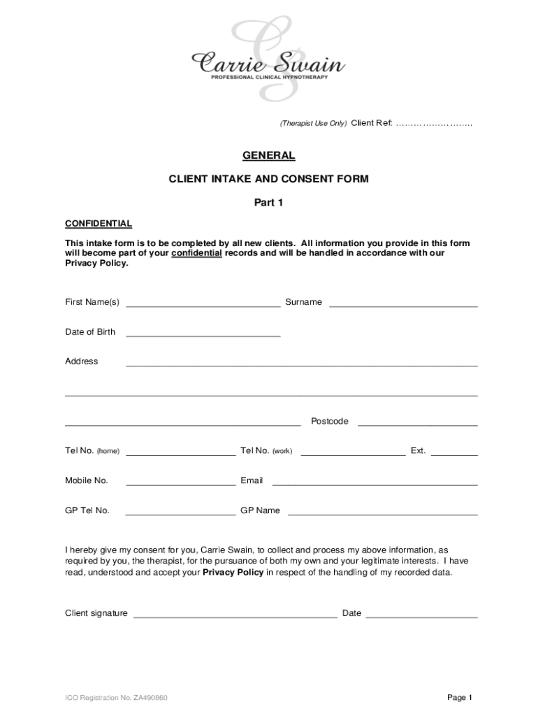 Get the free Client Intake Form - general-hypnotherapy-register.com